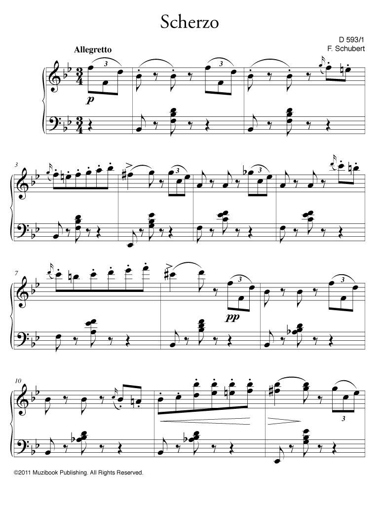 Scherzo in B-flat D 593/1 by Franz Schubert. Piano. Intermediate. MCL642
