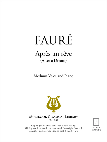 Après un rêve Op. 7 No. 1 by Gabriel Fauré. Medium Voice and Piano. French. Intermediate. MCL74b
